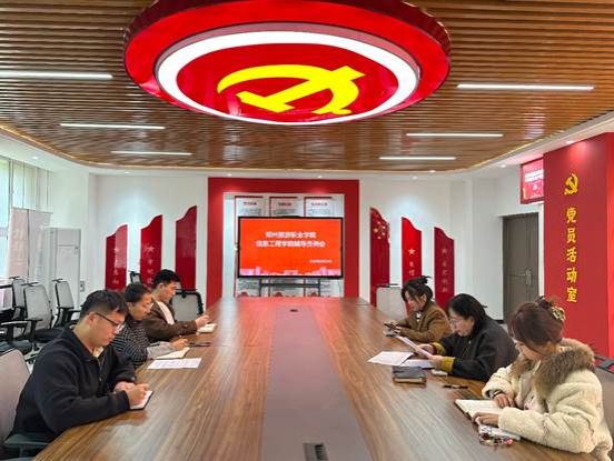 为部署近期学生管理各项工作,3月24日,信息工程学院召开辅导员工作例会,学院党总支副书记李舒、团总支书记文一鸣、学工办主任付佳及全体辅导员参加会议。