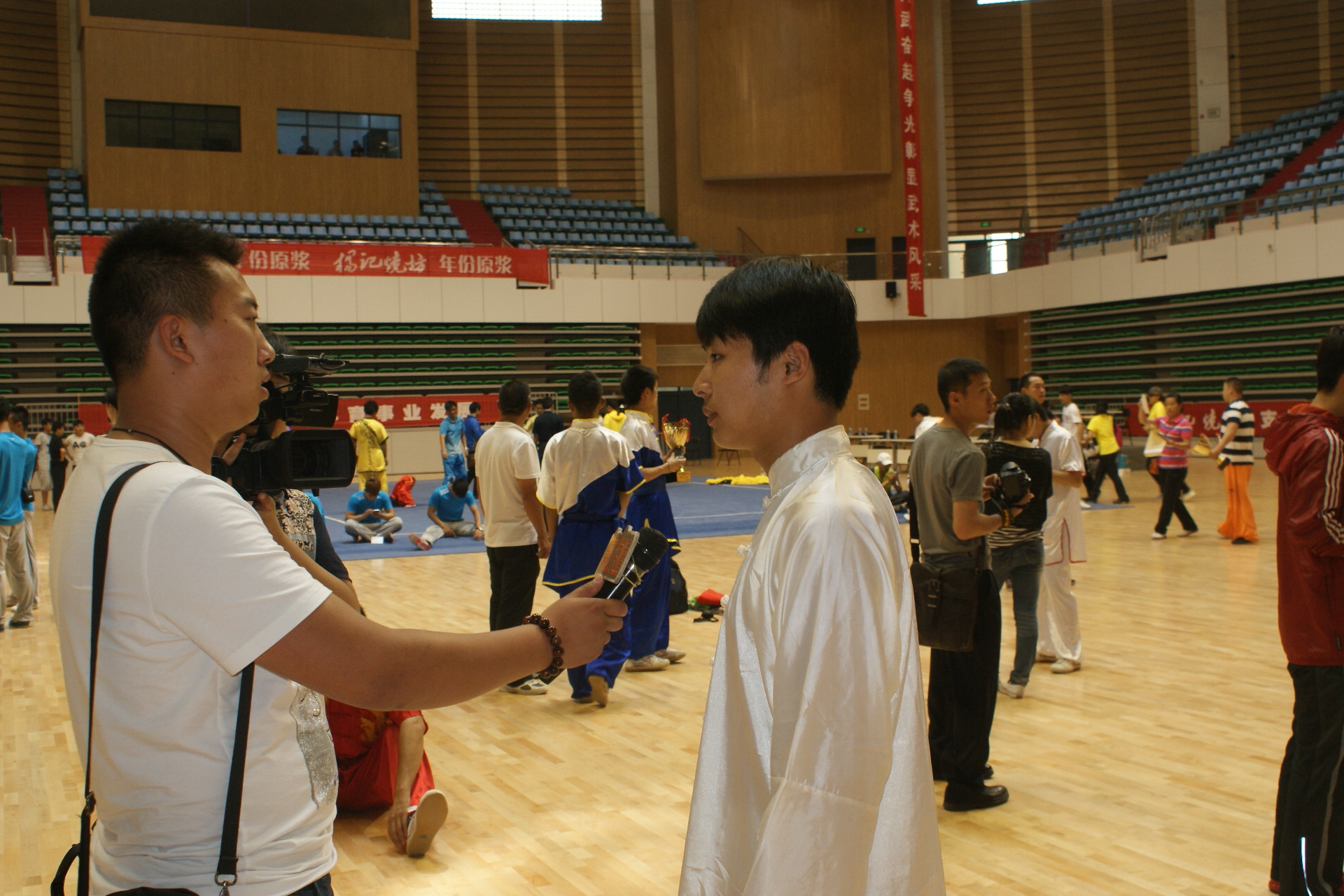 赛后郑州电视台专访我院武术队学生