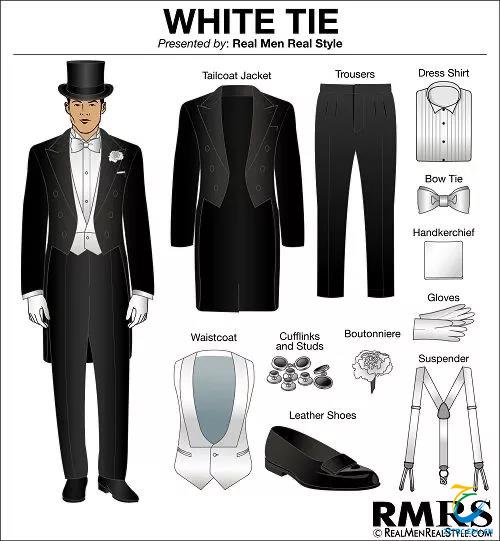 请注意,White Tie(白领结)是着装规范里正式、最高级别的晚宴着装规则。只有一些非常正式的舞会、晚宴才会要求White Tie级别的着装。比如,维也纳中国新年舞会,再比如,一些皇室婚礼或奥斯卡、诺贝尔颁奖晚宴。