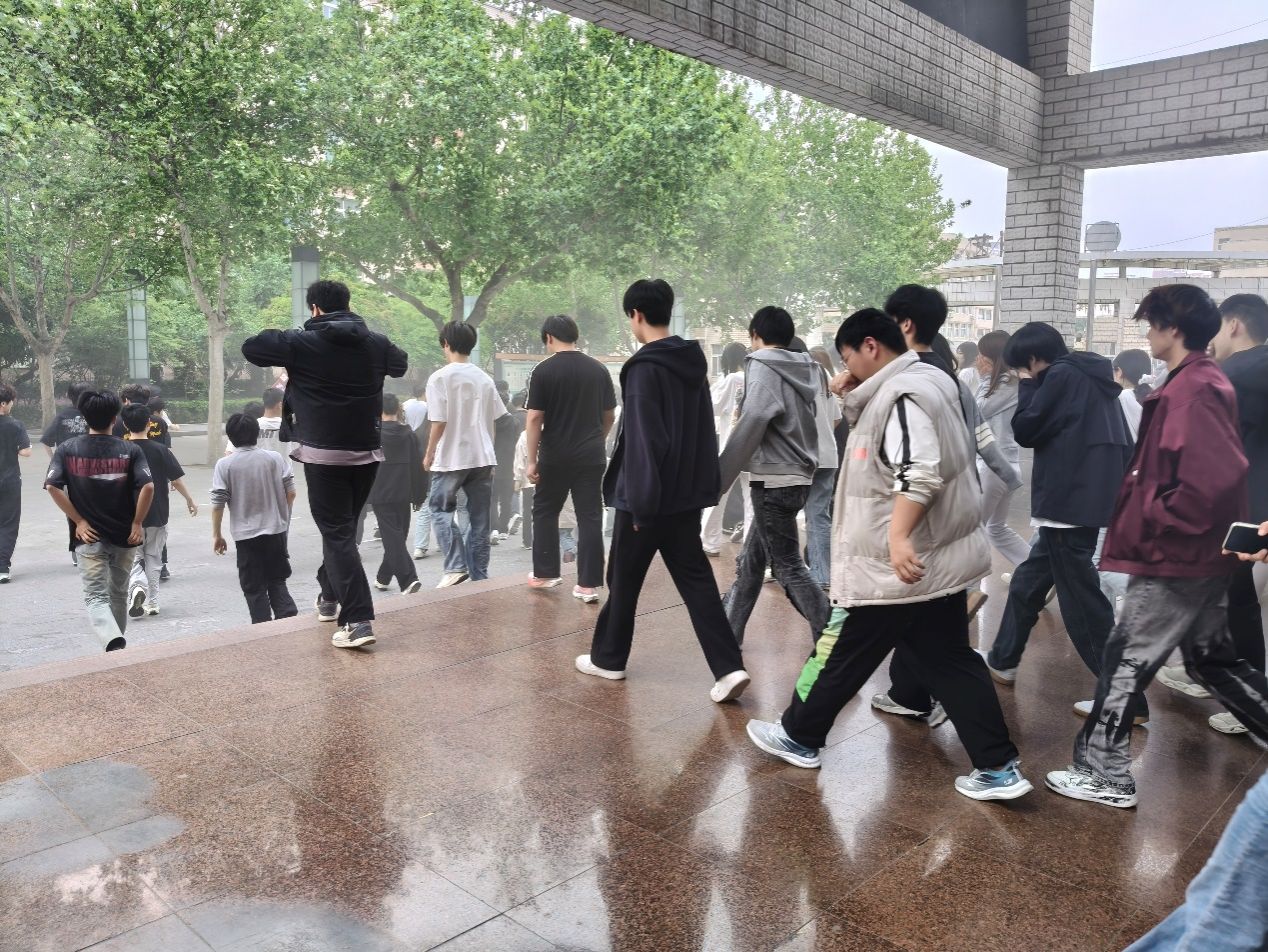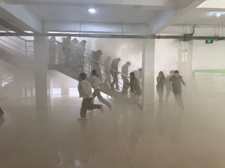随着急促的消防警报声响起,各班学生在班主任老师的全程引导下,严格遵循“就近疏散、快速有序”原则,按照前期讲解的逃生要领,用湿毛巾捂住口鼻、弯腰低姿快速行进,沿着预设疏散路线,从教室内有序撤离,全程步调一致、秩序井然,顺利抵达指定安全区域,各班级随即清点人数,确保全员安全撤离。整个疏散过程紧张有序、高效规范,达到了预期演练目标。