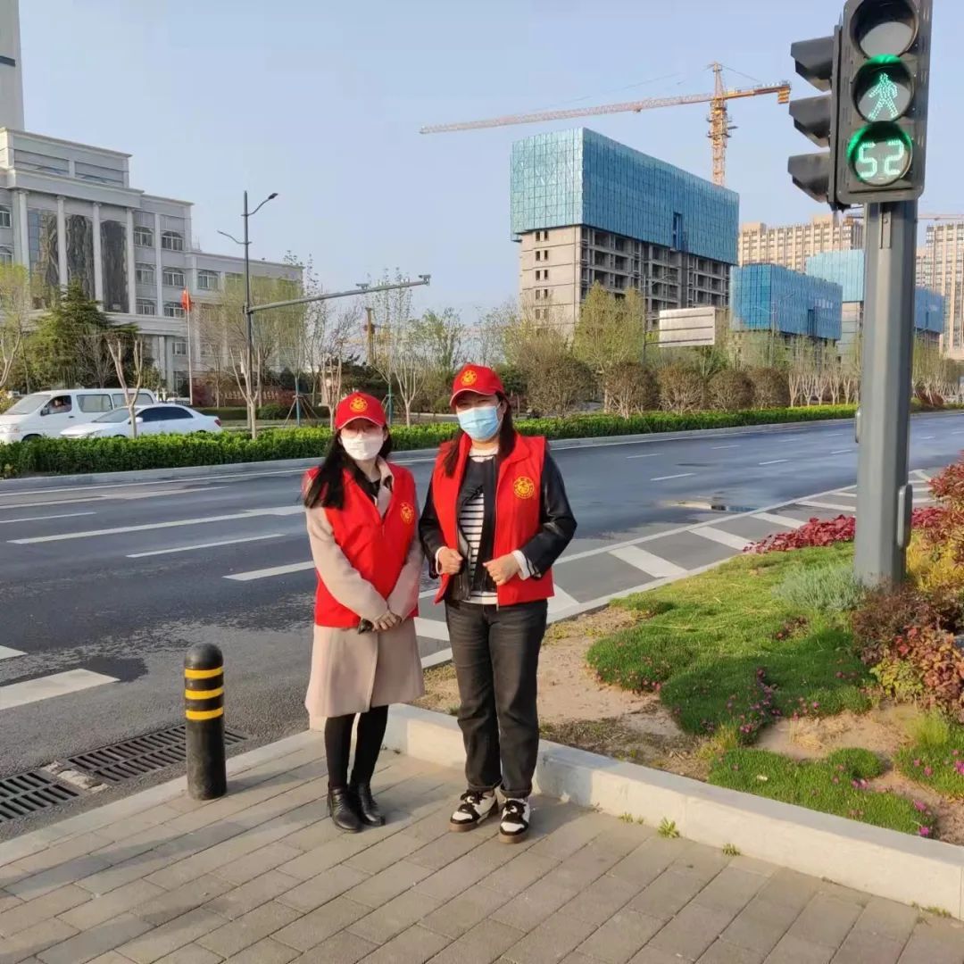 党员教师在上下班高峰期间,对文治路鼎瑞街口交叉口车辆乱停乱放、非机动车和行人闯红灯、行人不走斑马线等不文明交通行为进行劝导和纠正。